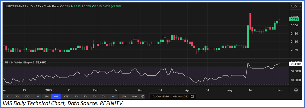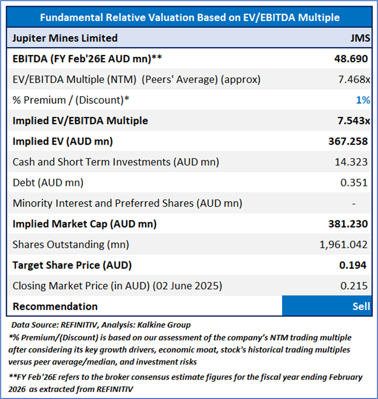 Given its current trading levels, recent rally in the share price, and risks associated, it is prudent to sell the stock at the current levels. Hence, a ‘Sell’ recommendation is given on the stock at the closing market price of AUD 0.215, up ~2.38%, as of 2 June 2025.