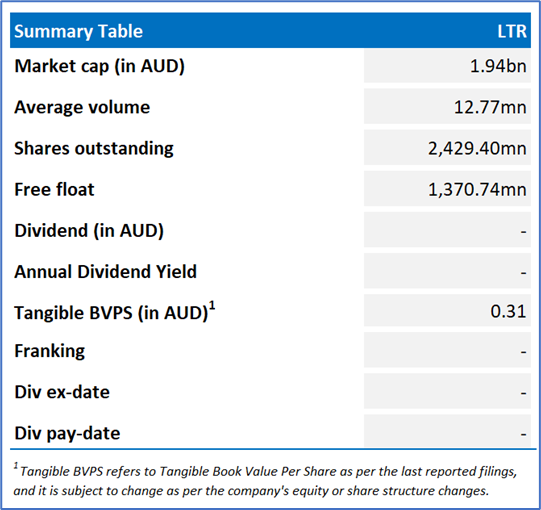 LTR is an Australia-based battery minerals producer. It controls two major hard rock lithium deposits. LTR's projects include the Kathleen Valley Project and the Buldania Project.