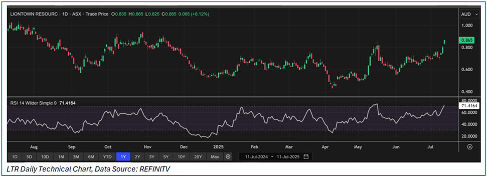Considering that the stock has surpassed its R2 level, rally in share price, current trading level, and risks associated, the share price can face consolidation at the current levels. Hence, a ‘Sell’ recommendation is given on the stock at the current market price of AUD 0.865, as of 11 July 2025, at 10:20 AM AEST.