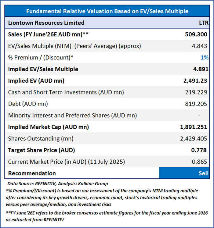 Stock might trade at a slight premium to its peers considering factors such as the QoQ revenue growth in Q3FY25, QoQ concentrate production increase in 3QFY25 and QoQ decrease in SC6e unit operating cost in Q3FY25. For conducting the valuation, following peers have been considered: Capricorn Metals Ltd (ASX: CMM), Pilbara Minerals Ltd (ASX: PLS), Gold Road Resources Ltd (ASX: GOR), and others.
