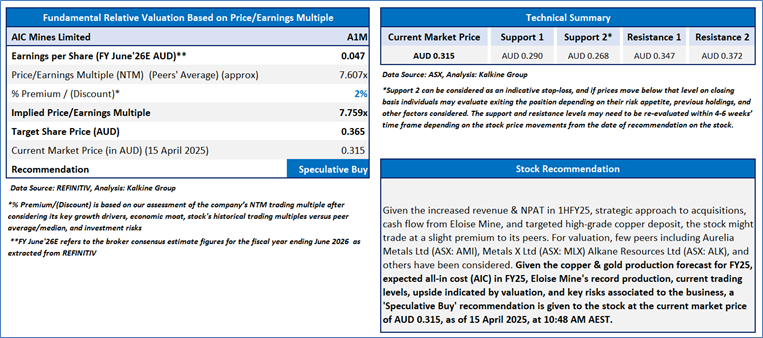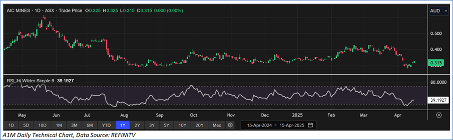 Section 2.0: AIC Mines Limited (‘Speculative Buy’ at AUD 0.315, current market price per share as on 15 April 2025)