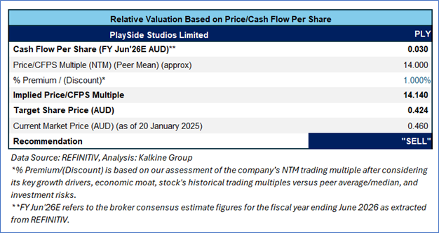 PLY is expected to trade at a premium compared to its peers considering the continued investments, 70+ titles developed across various platforms, and 67% revenue CAGR over the past five years, with record levels of revenue and earnings in FY24. For conducting the valuation, the following peers have been considered: Hipages Group Holdings Ltd (ASX: HPG), Superloop Ltd (ASX: SLC), and Domain Holdings Australia Ltd (ASX: DHG).