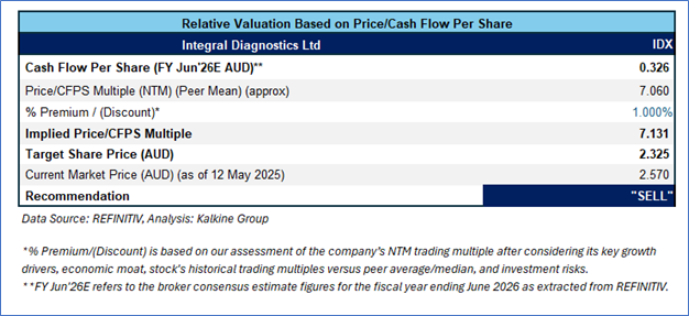 IDX is expected to trade at a slight premium to its peers considering the 7.8% and 31.9% YoY increase in Revenue and Operating NPAT in H1 FY25, respectively. For conducting valuation, the following peers have been considered: Pacific Smiles Group Ltd (ASX: PSQ), Australian Clinical Labs Ltd (ASX: ACL), and Ramsay Health Care Ltd (ASX: RHC).