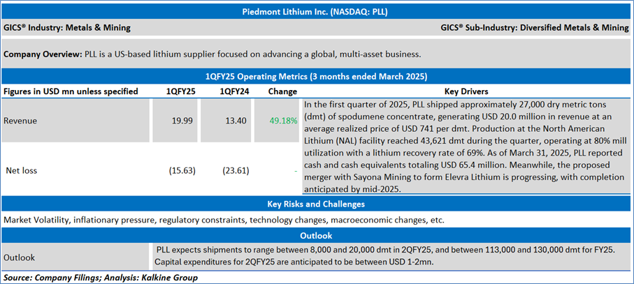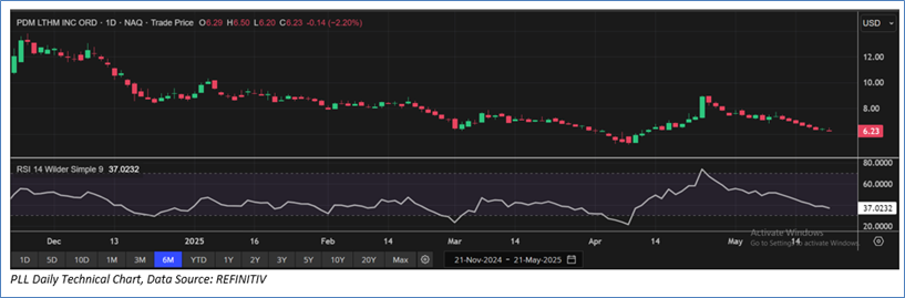 The stock has witnessed a dip of ~24.02% in the last 3 months, and over the past nine months, it has decreased by ~32.94%. The stock has a 52-week low and 52-week high of USD 5.15 and USD 16.41, respectively, and is currently trading below the 52-week high-low average. PLL was last covered in a report dated ’01 April 2025’.