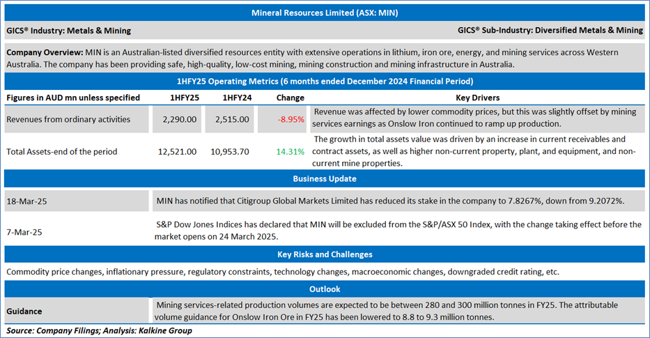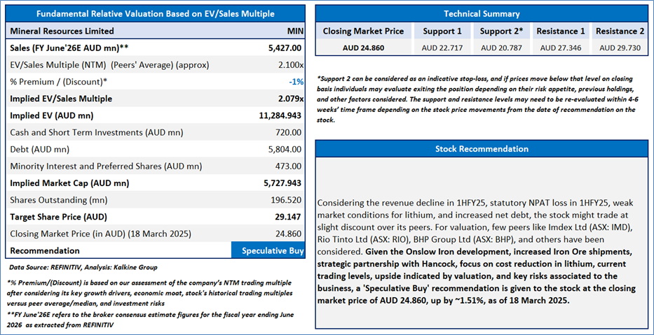 Section 2.0: Mineral Resources Limited (‘Speculative Buy’ at AUD 24.860 closing market price per share as on 18 March 2025)