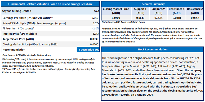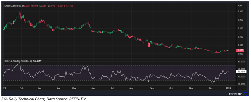 Section 2.0: Sayona Mining Limited (‘Speculative Buy’ at AUD 0.070, closing market price as on 2 January 2024)