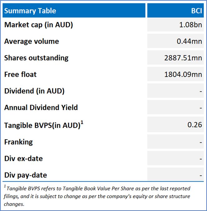 Company Overview: BCI Minerals Limited (ASX: BCI) is an Australia-based mineral resources company that is engaged in developing an industrial minerals business that explores for salt, iron ore, and sulphate of potash deposits. Kalkine’s Daily Report covers the Key Financial Metrics, Risks, Outlook, Technical Analysis along with the TTM-based Valuation, Target Price, and Recommendation on the stock.