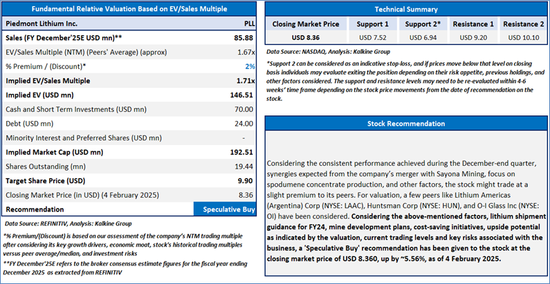 Section 2.0: Piedmont Lithium Inc. (‘Speculative Buy’ at USD 8.36, closing market price per share as on 4 February 2025)