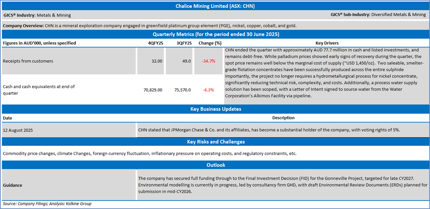 The stock has witnessed a rise of ~3.03% in last one month, and over the last nine months, it has increased by ~14.14%. The stock has a 52-week low and 52-week high of AUD 0.825 and AUD 2.090, respectively and is currently trading above the 52-week high-low average. CHN was last covered in a report dated ’22 July 2025’.
