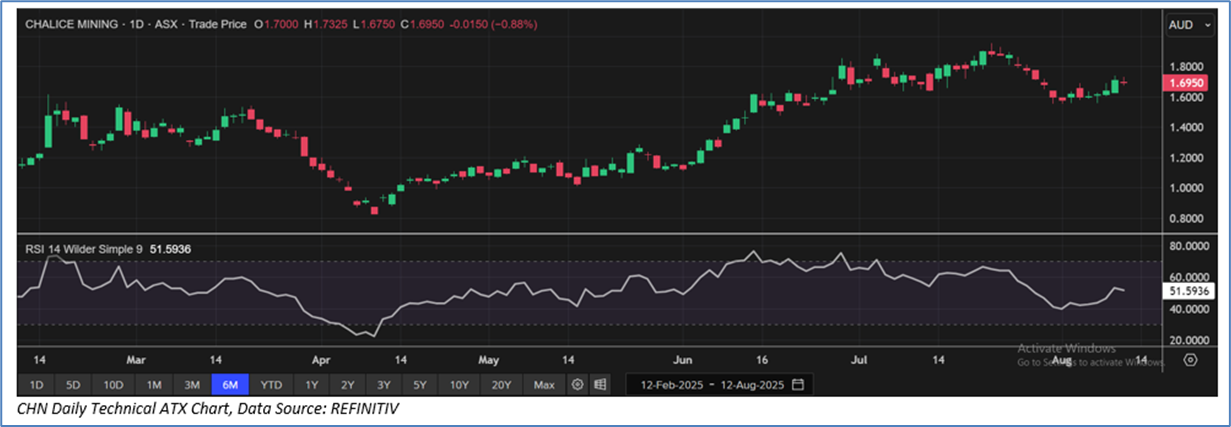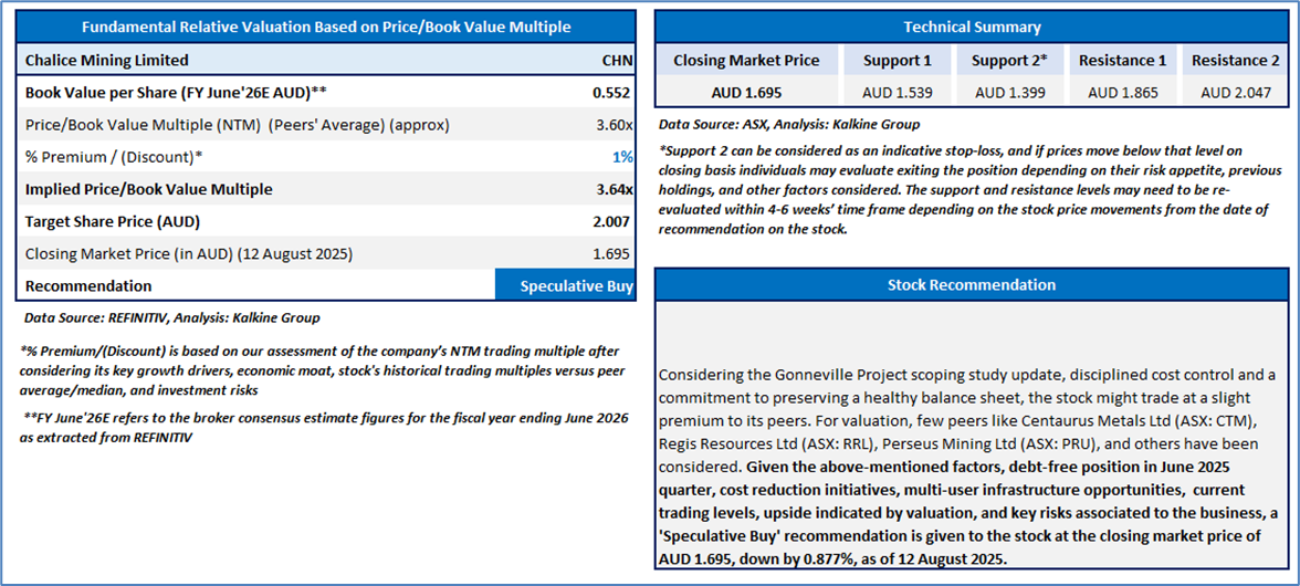 Section 2.0: Chalice Mining Limited (‘Speculative Buy’ at AUD 1.695, closing market price per share as on 12 August 2025)
