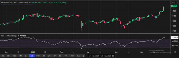 Considering that the stock is approaching its R2 level, rally in share price movement, current trading level, and risks associated, the share price can face consolidation at the current levels. Hence, a ‘Sell’ recommendation is given on the stock at the current price of AUD 1.597 (as of 26 May 2025, at 10:45 AM AEST).