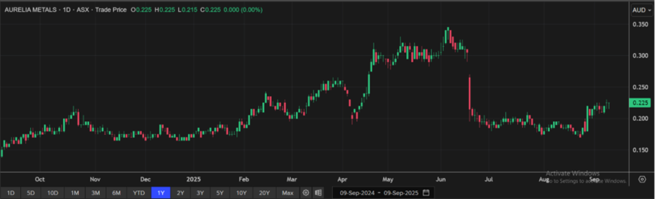 The stock might trade at a premium to peers given its FY25 11% increase in revenue to AUD 343.5 million versus FY24, a 69% YoY uplift in FY25 EBITDA to AUD 121.9 million, and a turnaround in profitability with NPAT of AUD 48.9 million in FY25 compared to a loss of AUD 5.7 million in FY24. For conducting the valuation, we have considered the following peers - St Barbara Ltd (ASX: SBM), Coronado Global Resources Inc (ASX: CRN), and 29Metals Ltd (ASX: 29M).