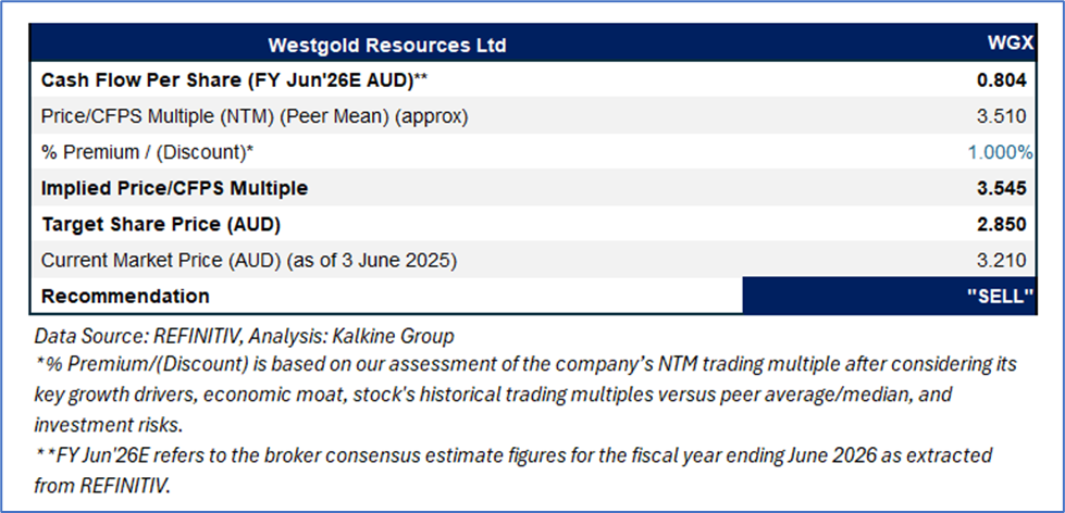 WGX is expected to trade at a slight premium to its peers considering the multiple underground mines, merger synergies, and further room to grow margins with future cost improvement. For conducting valuation, the following peers have been considered: Pantoro Gold Ltd (ASX: PNR), Alkane Resources Ltd (ASX: ALK), and Brightstar Resources Ltd (ASX: BTR).