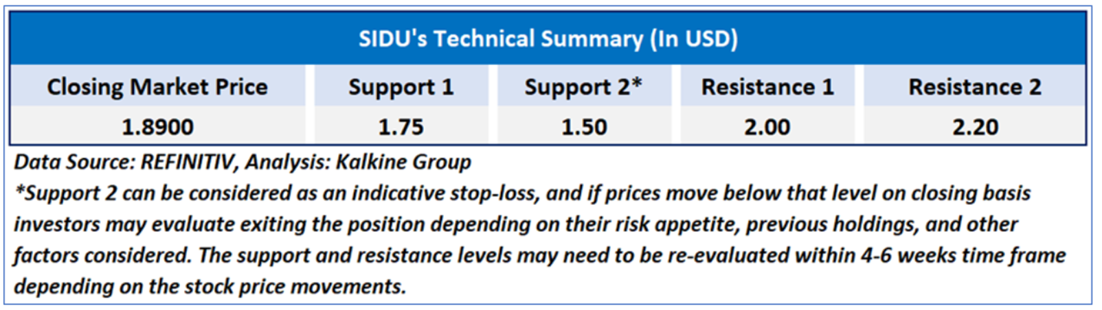 As per our previous US Daily Report published on ‘SIDU’ on 15th May 2025, Kalkine provided a ‘Speculative Buy’ stance on the stock at USD 1.89 based on fundamental analysis and the stock price has now moved up by ~8.47% and trading above resistance 1.