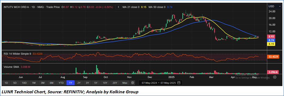 As per the above-mentioned price action, recent key business and financial updates, momentum in the stock over the last month, and technical indicators analysis, a ‘Speculative Buy’ rating has been given to Intuitive Machines, Inc (NASDAQ: LUNR) at the closing market price of USD 8.93 as of May 07,2025.