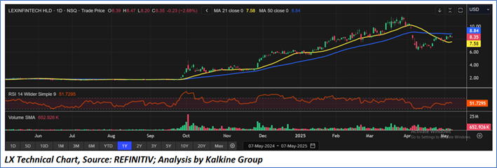 As per the above-mentioned price action, recent key business and financial updates, momentum in the stock over the last month, and technical indicators analysis, a ‘Watch’ rating has been given to LexinFintech Holdings Ltd (NASDAQ: LX) at the current market price of USD 8.35 as of May 07,2025 at 08:40 AM PDT.