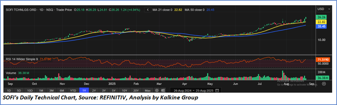 As per our previous US Dailies Report published on ‘SOFI’ on Aug 11, 2025, Kalkine provided an ‘Buy’ stance on the stock at USD 21.78 based on fundamental analysis and the stock price has now moved up by ~ 20.57% since then and has breached resistance level 2.