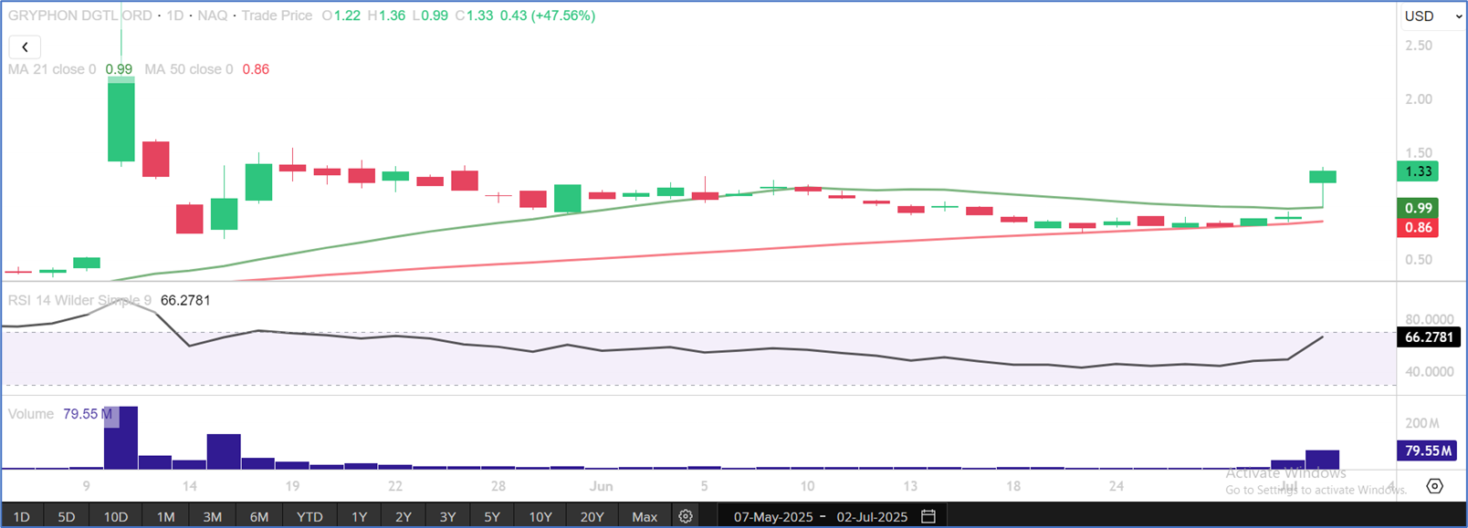 Gryphon Digital Mining, Inc (NASDAQ: GRYP) is a company focused on bitcoin mining. It is also involved in the acquisition and development of energy assets to support infrastructure for artificial intelligence (AI) and high-performance computing (HPC) data centers. As per our previous US Dailies report published on ‘GRYP’ on 10th June 2025, Kalkine provided a ‘Speculative Buy’ stance on the stock at USD 1.17 based on fundamental analysis and the stock price has now moved up by ~13.68% and trading above resistance 2.