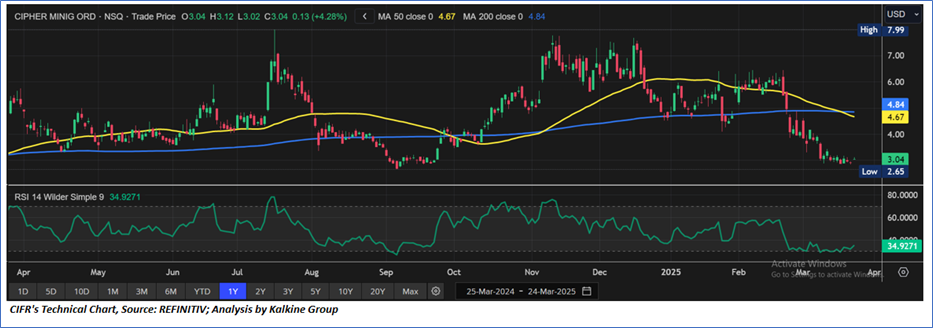 As per the above-mentioned price action, important technical support levels near USD 2.90 -USD 3.00, momentum in the stock over the last month, and technical indicators analysis, a ‘Speculative Buy’ rating has been given for Cipher Mining Inc. (NASDAQ: CIFR) at the current market price of USD 3.04, as of March 24, 2025, at 06:55 am PDT.