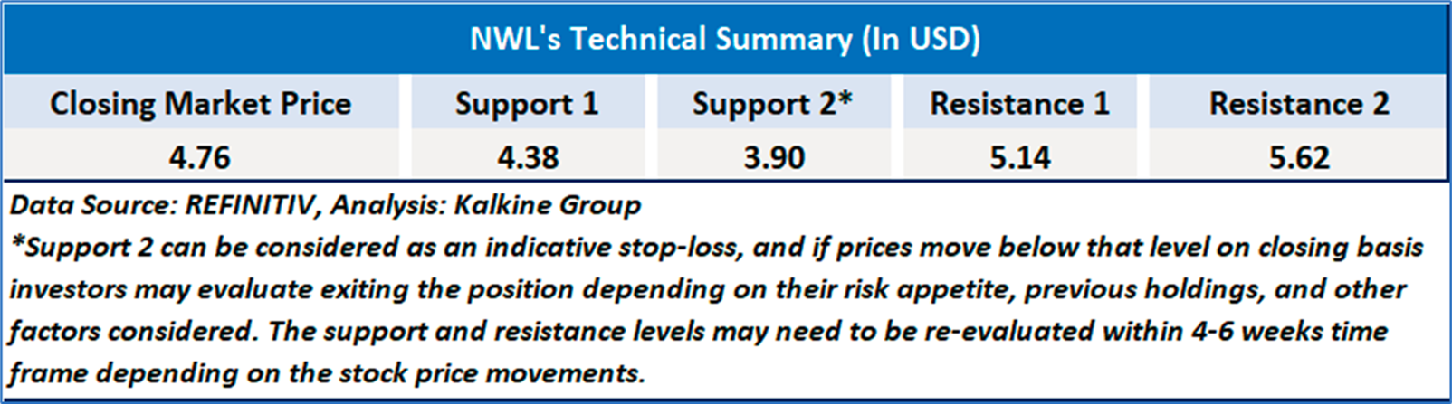 Considering the current trading levels, risks associated, and volatile market conditions on the back of higher interest rates, a ‘Sell’ rating is assigned to the ’NWL’ at the current market price of USD 5.86 as of Aug 18, 2025 (7.10 am PDT).