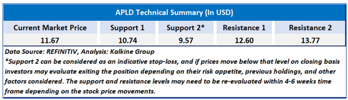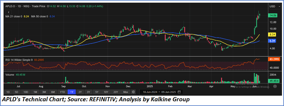 As per our previous US Dailies Report published on ‘APLD’ on 4th June, 2025, Kalkine provided an ‘Speculative Buy’ stance on the stock at USD 11.67 based on fundamental analysis and the stock price has now moved by ~ 20.39% since then and is trading above resistance 2.