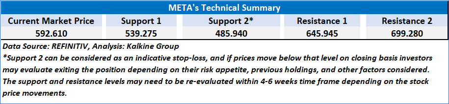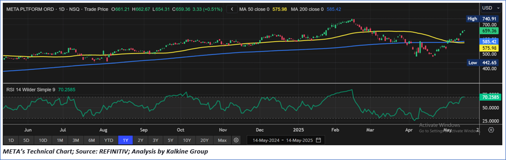 As per our previous Kalkine’s Low Carbon Research Report published on ‘META’ on 02nd May 2025, Kalkine provided a ‘Buy’ stance on the stock at USD 592.61, based on “recent business and financial activities, improved capital efficiencies, evident by increased return on equity, asset and invested capital, key risk and current market trading levels”, giving a return of 11.26%, attaining resistance 1 and moving towards resistance 2.