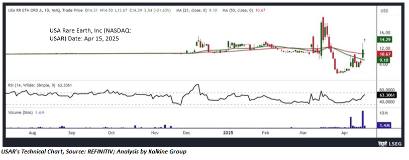 USA Rare Earth, Inc (NASDAQ: USAR) supplies sintered neo magnets and other rare earth metals. The company is working on developing a NdFeB magnet manufacturing facility in Stillwater, Oklahoma. As per our previous US Dailies report published on ‘USAR’ on 14th Apr 2025, Kalkine provided an ‘Speculative Buy’ stance on the stock at USD 10.59 based on fundamental analysis and the stock price has now moved down by ~34.93% since then.