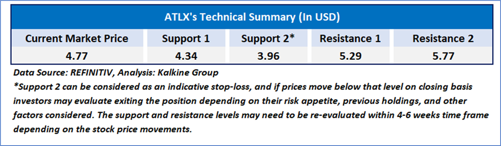 Atlas Lithium Corporation (NASDAQ: ATLX) is a lithium development company focused on advancing its Neves Project to production. The Company’s properties encompass approximately 797 square kilometers of lithium, as well as exploration properties in other battery minerals, including nickel, copper, rare earths, graphite, and titanium. As per our previous US Daily report published on ‘ATLX’ on Feb 3, 2026, Kalkine provided a ‘Speculative Buy’ stance on the stock at USD 4.77 based on technical analysis and the stock price has now moved up by 15.72% and trading above resistance 1.