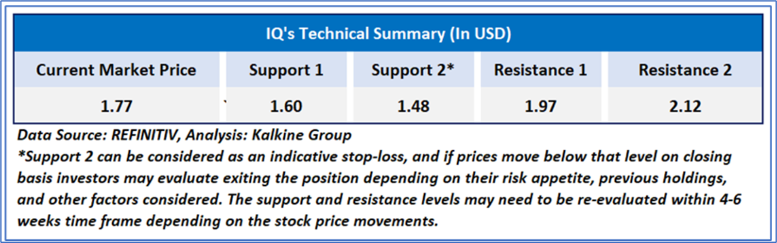 As per our previous US Dailies Report published on ‘IQ’ on June 09, 2025, Kalkine provided an ‘Speculative Buy’ stance on the stock at USD 1.77 based on fundamental analysis and the stock price has now moved up by ~ 38.98% since then and has breached resistance level 2.