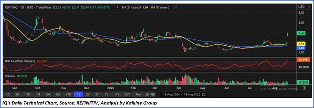 Considering the current trading levels, risks associated, and volatile market conditions, notional gains and price action stance, a "Sell" recommendation on ‘IQ’ has been given at the current market price of USD 2.46 as on 18 August 2025 at 7:10 am PDT.