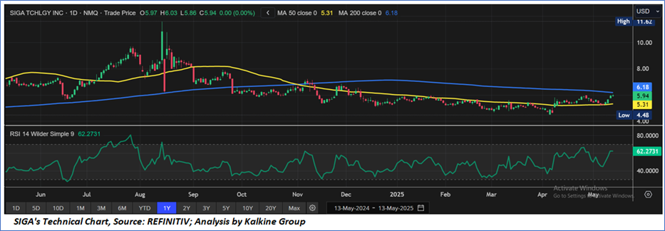 As per the above-mentioned price action, recent key business and financial updates, momentum in the stock over the last month, and technical indicators analysis, a ‘Speculative Buy’ rating has been given SIGA Technologies, Inc. (NASDAQ: SIGA) at the closing price of USD 5.94, as of May 13, 2025.