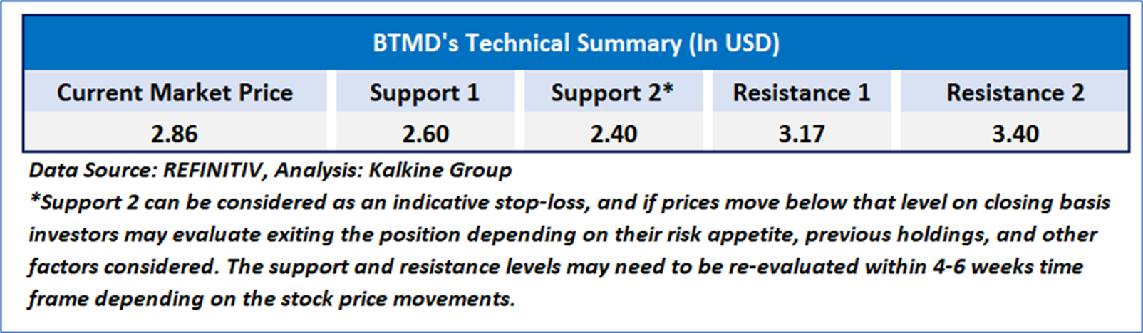 Biote Corp. (NASDAQ: BTMD) operates a practice-building business within the hormone optimization space. The Company provides the necessary components to enable Biote-certified practitioners to establish, build and implement a program designed to optimize hormone levels using personalized solutions for their patient populations. As per our previous US Daily report published on ‘BTMD’ on Dec 11, 2025, Kalkine provided a ‘Buy’ stance on the stock at USD 2.86 based on technical analysis and the stock price is now trading below support 2.