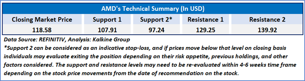 As per our previous US American Technology Report published on ‘AMD’ on June 05, 2025, Kalkine provided an ‘Buy’ stance on the stock at USD 118.58 based on fundamental analysis and the stock price has now moved by ~ 31.76% since then and has attained resistance 1 and resistance 2.