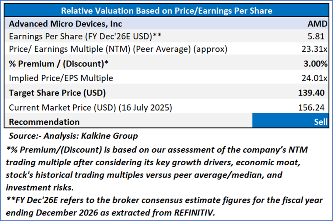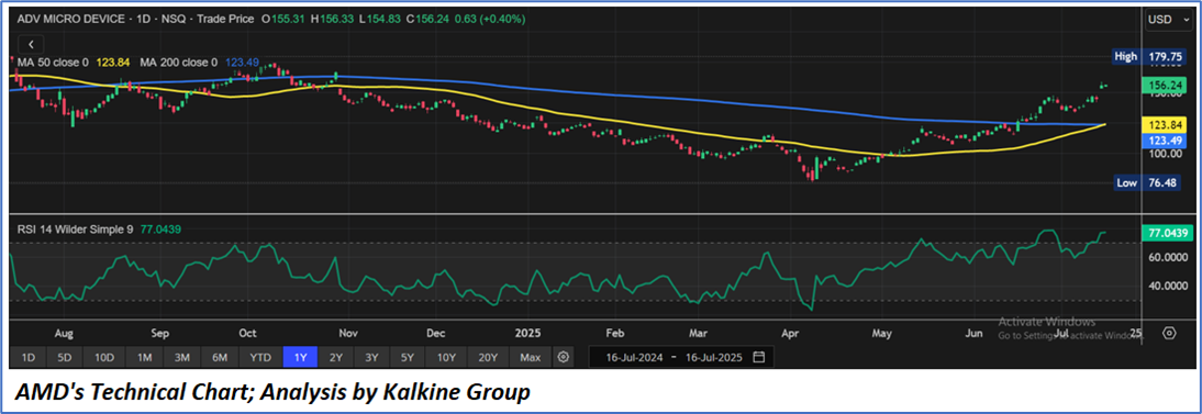 Based on the notional gains, valuation downside and price action stance, a "Sell" recommendation on Advanced Micro Devices, Inc (NASDAQ: AMD) has been given at the current market price of USD 156.24 as on 16 July 2025, at 06:45 AM PDT.