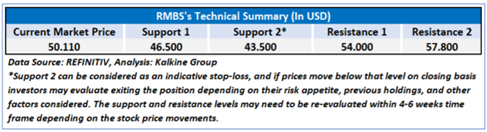 As per our previous American Tech Report published on ‘RMBS’ on 29th April, 2025, Kalkine provided an ‘Buy’ stance on the stock at USD 50.11 based on fundamental analysis and the stock price has now moved by ~ 16.08% since then and is trading above resistance 2.