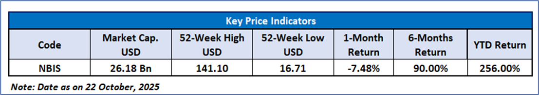 Nebius Group NV, (NASDAQ: NBIS) headquartered in the Netherlands, operates within the technology sector and focuses on building a diverse portfolio of artificial intelligence (AI)–driven technology assets. The company aims to establish a global, AI-centric enterprise that unites core components of AI innovation — including infrastructure, data, and advisory services. Its offerings include a specialized cloud platform designed for AI workloads, development support for autonomous vehicle technologies, and solutions in the field of generative AI.