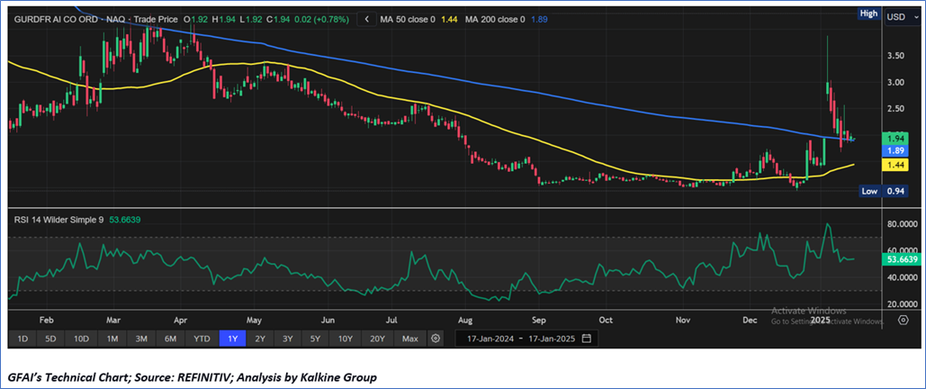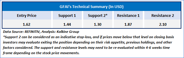 As per our previous US Daily Report published on ‘GFAI’ on 09th December 2024, Kalkine provided a ‘Speculative Buy’ stance on the stock at USD 1.62 based on “decent fundamentals, other key financial highlights, the upside indicated by valuation and key risks” and the stock price has now moved by ~19.75% since then and attained resistance 1.