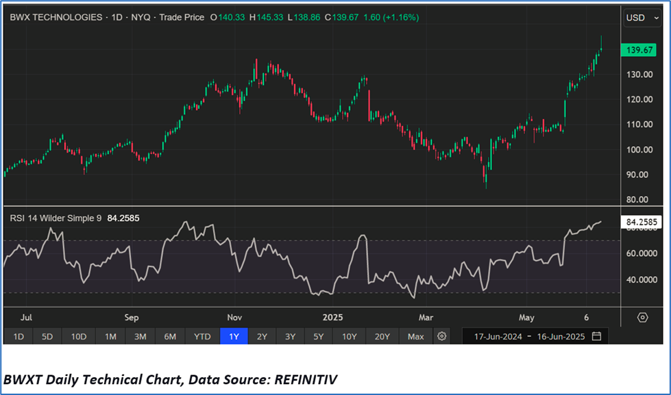 BWXT’s Daily Price Chart
