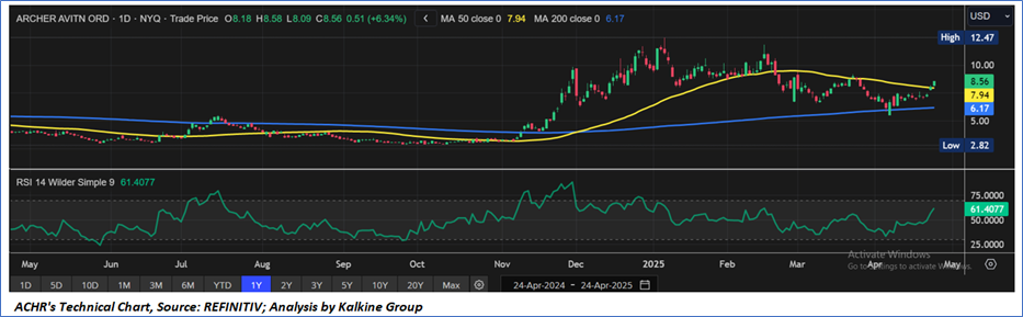 As per the above-mentioned price action, recent key business and financial updates, momentum in the stock over the last month, and technical indicators analysis, a ‘Speculative Buy’ rating has been given Archer Aviation Inc. (NYSE: ACHR) at the closing price of USD8.56, as of April 24, 2025.
