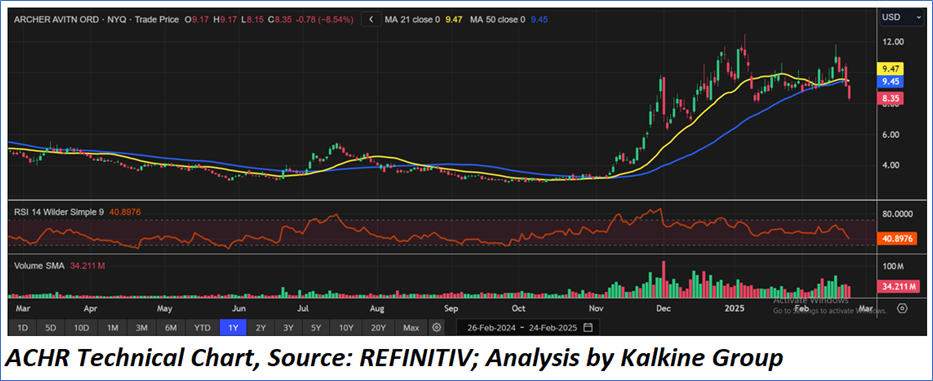 As per the above-mentioned price action, recent key business and financial updates, momentum in the stock over the last month, and technical indicators analysis, a ‘Watch’ rating has been given to Archer Aviation Inc (NYSE: ACHR) at the closing market price of USD 8.35 as of February 24,2025.