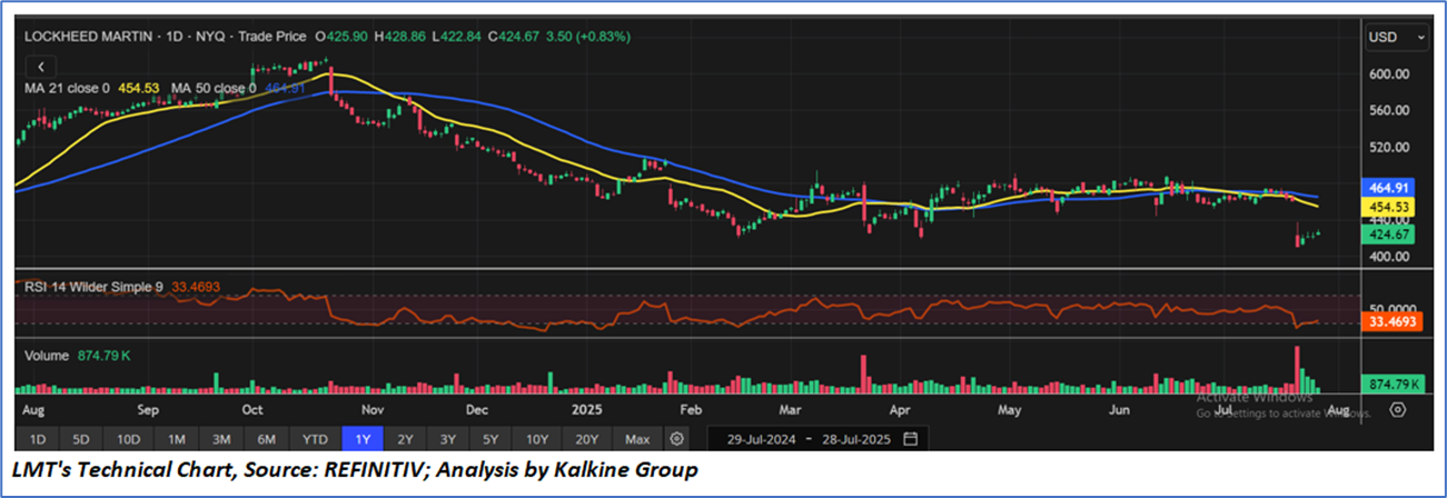 As per the above-mentioned price action, recent key business and financial updates, momentum in the stock over the last month, and technical indicators analysis, a ‘Buy’ rating has been given to Lockheed Martin Corporation (NYSE: LMT) at the current market price of USD 424.67 as of July 28,2025 at 8:45 am PDT.