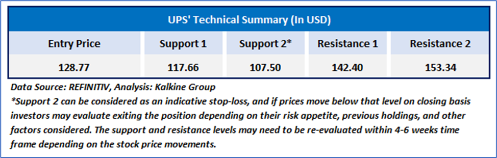 As per our previous US Daily Report published on ‘UPS’ on 26th August 2024, Kalkine provided a ‘Buy’ stance on the stock at USD 128.77, based on “price action, recent key business and financial updates, momentum in the stock over the last month, and technical indicators analysis”.