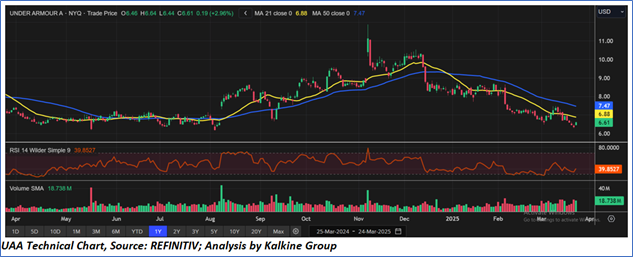 As per the above-mentioned price action, recent key business and financial updates, momentum in the stock over the last month, and technical indicators analysis, a ‘Buy’ rating has been given to Under Armour, Inc (NYSE: UAA) at the closing market price of USD 6.61 as of March 24,2025.