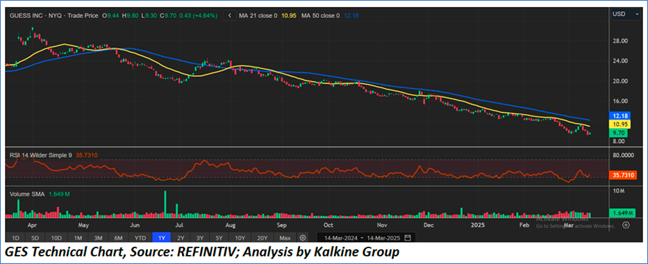 As per the above-mentioned price action, recent key business and financial updates, momentum in the stock over the last month, and technical indicators analysis, a ‘Buy’ rating has been given to Guess?, Inc. (NYSE: GES) at the closing market price of USD 9.70 as of March 14,2025.