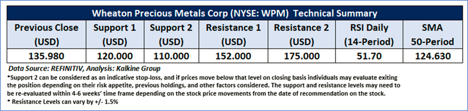 Wheaton Precious Metals Corp (NYSE: WPM) is one of the world’s leading precious metals streaming companies, focused primarily on gold and silver. As per our previous US Daily report published on ‘WPM’ on Feb 8, 2026, Kalkine provided a ‘Speculative Buy’ stance on the stock at USD 135.98 based on technical analysis and the stock price has now moved up by 14.21% and trading above resistance 1.