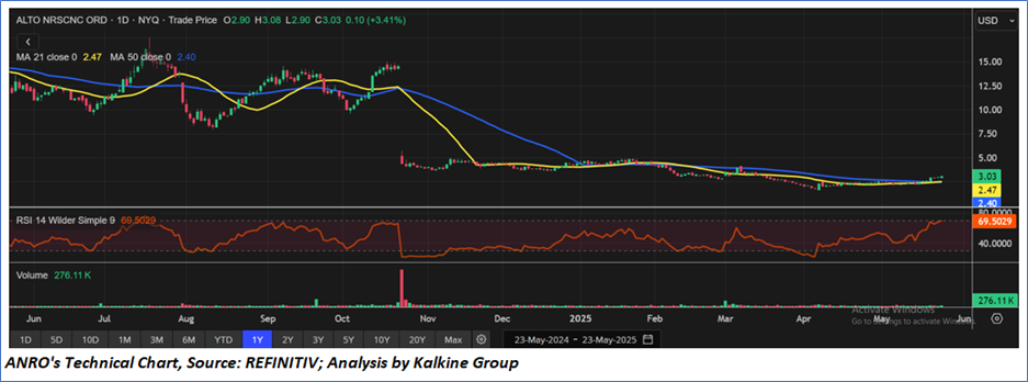 As per the above-mentioned price action, recent key business and financial updates, momentum in the stock over the last month, and technical indicators analysis, a ‘Watch’ rating has been given to Alto Neuroscience, Inc (NYSE: ANRO) at the closing market price of USD 3.03 as of May 23,2025.