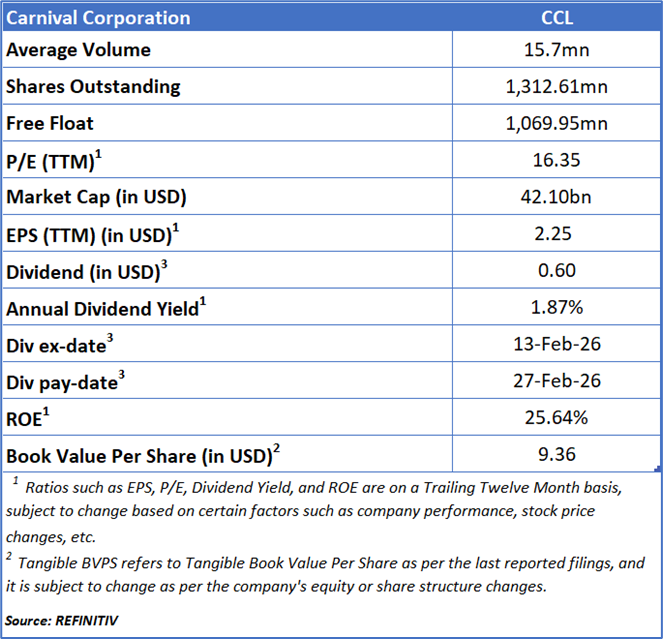 As per Global Travel and Leisure Report published on ‘CCL’ on Jul 17, 2025, Kalkine provided an ‘Buy’ stance on the stock at USD 29.09 based on fundamental analysis and the stock price has now moved up by ~ 10.45% since then.