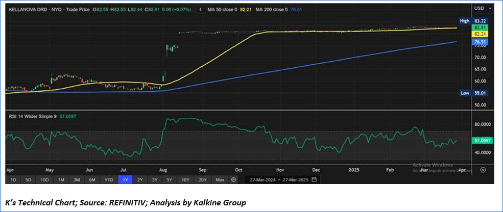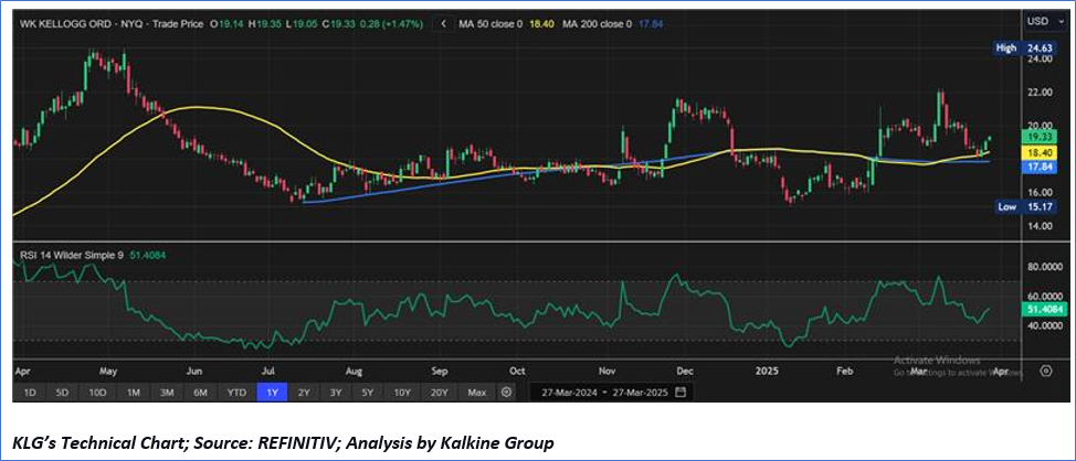 Considering the current trading levels, current macro environment, resistance 1 and resistance 2 attainment, and risks associated, a ‘Sell’ rating is assigned to the “KLG” at the current market price of USD 19.33, as of March 27, 2025, at 07:10 am PDT.