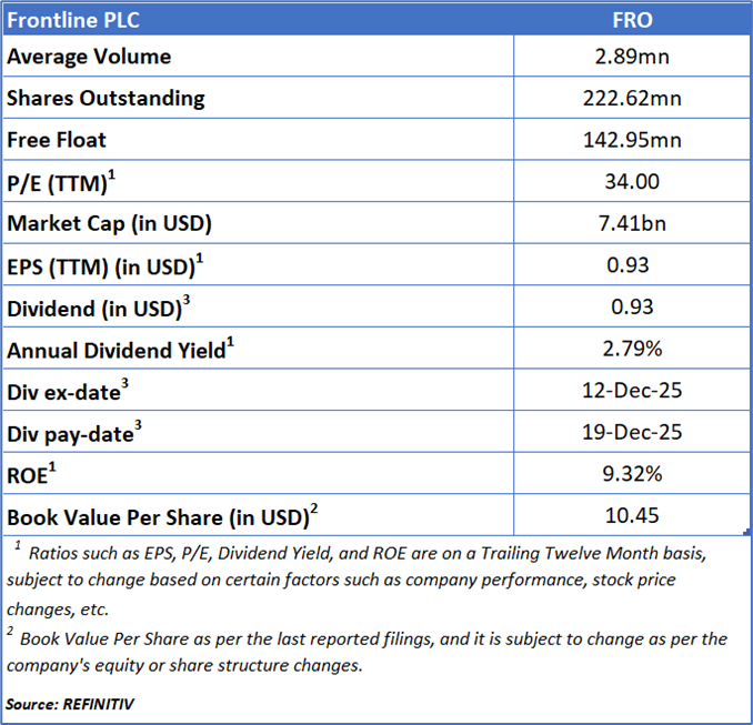 As per Kalkine’s Dividend Income Report published on ‘FRO’ on Feb 11, 2026, Kalkine provided an ‘Buy’ stance on the stock at USD 29.05 based on fundamental analysis and the stock price has now moved up by ~ 14.56% since then.