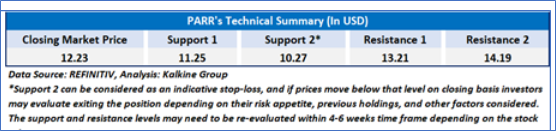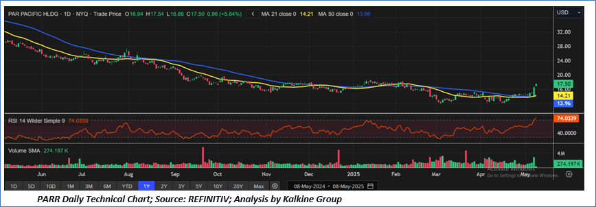 As per our previous US Dailies report published on ‘PARR’ on 16th April, 2025, Kalkine provided an ‘Buy’ stance on the stock at USD 12.23 based on fundamental analysis and the stock price has now moved by ~ 43.09% since then and is trading above resistance 2.